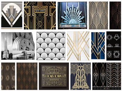 Art Deco 的特色就是大量運用了鯊魚紋、斑馬紋、曲折鋸齒圖形、階梯圖形、粗體與彎曲的曲線、放射狀圖樣等等來裝飾,是現代藝術、設計上的一種運動與風格...