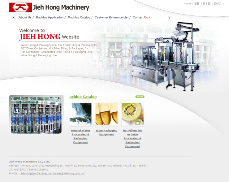 全部作品 精選作品 企業形象 購物網站 投審稿系統 客製平台 醫療美容 餐飲旅宿 教育/協會/政府 活動網站 RWD響應式 賀卡 3D環景攝影 首頁 iWare作品 介鴻機械 介鴻機械 介紹 介鴻機械成立於西元1991年,目前員工30人,在台灣食品飲料機械的市場上,我們從業人員已累積了超過三十五年的經驗,我們擁有最專業的研發設計部門及生產部門,並且提供最完善的售後服務。介鴻主要營業項目包含礦泉水、各式果汁與汽水飲料與熱充填產品、醬油、酒類整廠包裝設備等。 功能項目 SEO 產業分類 企業形象 SEO 馬路科技2018 聖誕佳節賀卡 賀卡 iWare 2018聖誕節賀卡 賀卡
