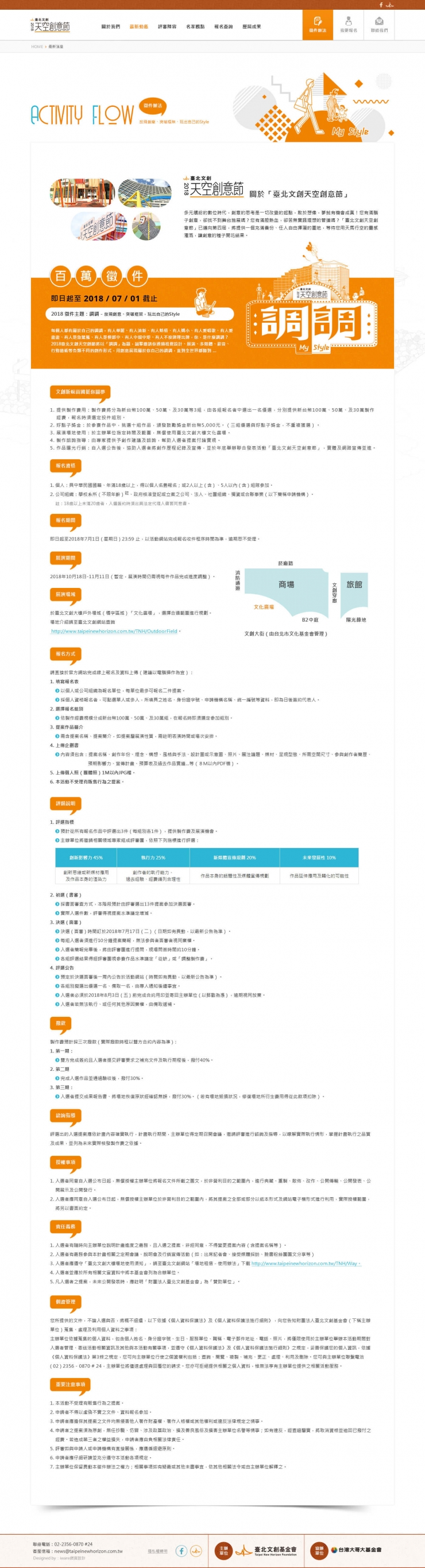 2015年啟動「臺北文創天空創意節」百萬徵件計畫,公開徵集創意提案,由臺北文創提供製作費、業師指導與展演空間,協助新生代文創工作者踏出圓夢的第一步,此計畫辦理至今以邁入第四屆,臺北文創基金會將持續發掘優秀文創人才。