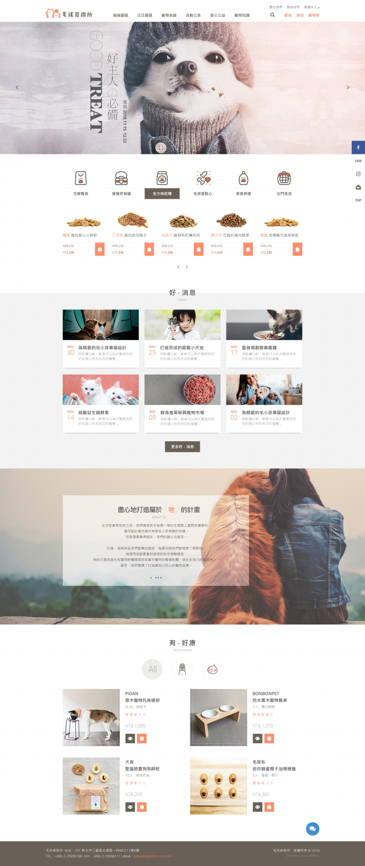 全部作品 精選作品 企業形象 購物網站 投審稿系統 客製平台 醫療美容 餐飲旅宿 教育/協會/政府 活動網站 RWD響應式 賀卡 3D環景攝影 首頁 iWare作品 毛孩食務所 毛孩食務所 介紹 我們為「牠」即將來到的生活,盡心地打造屬於牠的計畫,最終,我們選擇了打造讓自己放心的寵物品牌。 製作團隊:規劃/Lori, 設計/Katie&Trista, 前端/Trista, 程式/Austin 功能項目 購物網站 產品上架 文章佈達 訂單管理 購物車機制 會員機制 優惠機制 金流串接 物流串接 電子發票串接 產業分類 購物網站 專業型網站 社團法人中華民國職能治療師公會全國聯合會 精選作品 醫療美容 RWD響應式 樂雅玩具 精選作品 RWD響應式 形象型網站