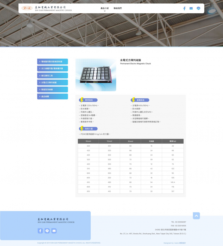 全部作品 精選作品 企業形象 購物網站 投審稿系統 客製平台 醫療美容 餐飲旅宿 教育/協會/政府 活動網站 RWD響應式 賀卡 3D環景攝影 首頁 iWare作品 星加電機工業有限公司 星加電機工業有限公司 介紹 專業生產電磁盤、永電磁盤、電磁用整流脫磁控制器、永久磁鐵夾盤、電磁鐵夾盤、磁石應用工具 製作團隊:規劃/Lori, 設計/Erica, 前端/Karen 功能項目 靜態內頁 產業分類 企業形象 形象型網站 快樂工坊 企業形象 RWD響應式 創英文教股份有限公司 RWD響應式 教育/協會/政府