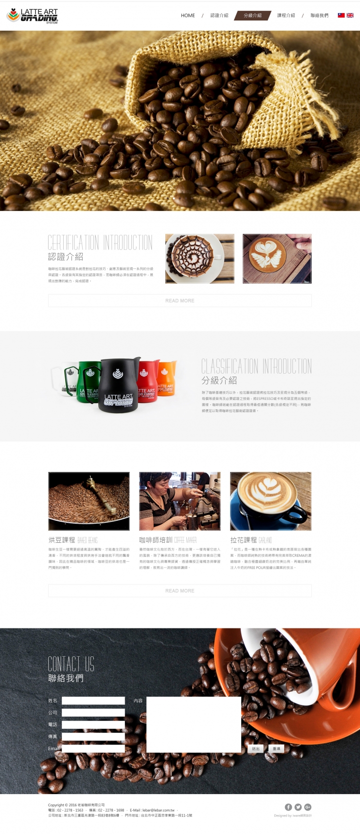 全部作品 精選作品 企業形象 購物網站 投審稿系統 客製平台 醫療美容 餐飲旅宿 教育/協會/政府 活動網站 RWD響應式 賀卡 3D環景攝影 首頁 iWare作品 老爸咖啡 老爸咖啡 介紹 Latte Art Grading System為拉花大師Luigi Lupi等人,為了向世界各地推廣咖啡拉花文化與技巧,於2015年聯合創立的拉花藝術認證系統。 產業分類 企業形象 RWD響應式 陸海洋行 企業形象 銘享精密 企業形象 RWD響應式