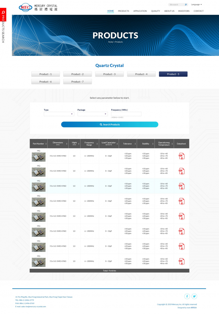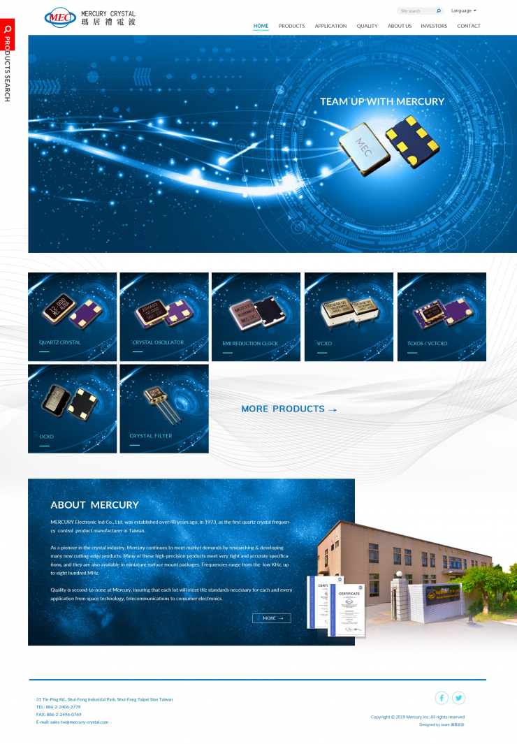 全部作品 精選作品 企業形象 購物網站 投審稿系統 客製平台 醫療美容 餐飲旅宿 教育/協會/政府 活動網站 RWD響應式 賀卡 3D環景攝影 首頁 iWare作品 瑪居禮電波工業股份有限公司 瑪居禮電波工業股份有限公司 介紹 瑪居禮電波工業(股)公司已有40年歷史,是台灣第一家生產製造石英晶體的廠商。 規劃/Lori 設計/前端 Winnie、 Trista 程式 Nick 功能項目 幻燈片管理 產品上架管理 產品搜尋管理 單層頁面管理 二層頁面管理 聯絡我們管理 產業分類 企業形象 RWD響應式 煒立實業股份有限公司 企業形象 RWD響應式 黃文彪律師 企業形象 RWD響應式