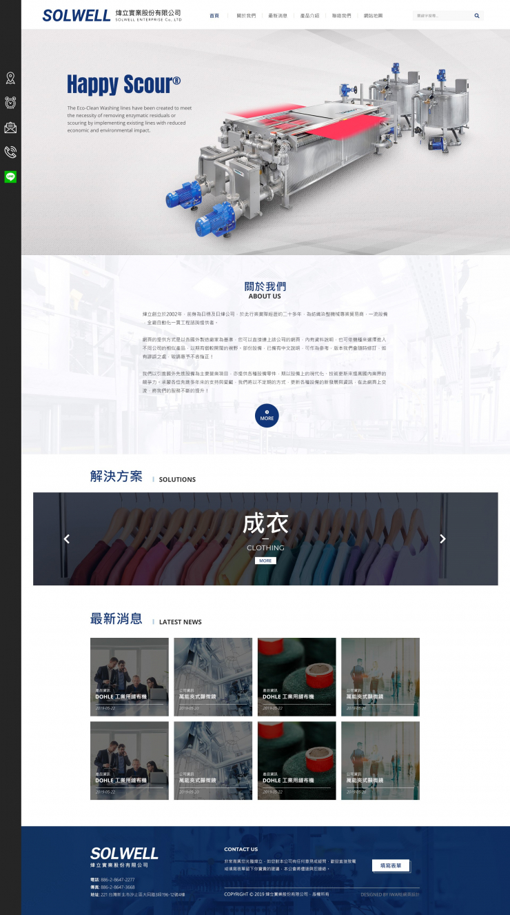 全部作品 精選作品 企業形象 購物網站 投審稿系統 客製平台 醫療美容 餐飲旅宿 教育/協會/政府 活動網站 RWD響應式 賀卡 3D環景攝影 首頁 iWare作品 煒立實業股份有限公司 煒立實業股份有限公司 介紹 煒立創立於2002年,前身為日穩及日煒公司,於此行業實際經歷約二十多年,為紡織染整機械專業貿易商,一流設備,全廠自動化一貫工程諮詢提供者。 規劃/Lori 設計/前端 Trista 程式 育瑋 功能項目 幻燈片管理 產品上架管理 品牌管理 單層頁面管理 二層頁面管理 聯絡我們管理 Google 全站搜尋 產業分類 企業形象 RWD響應式 捷智科技股份有限公司 企業形象 RWD響應式 形象型網站 瑪居禮電波工業股份有限公司 企業形象 RWD響應式