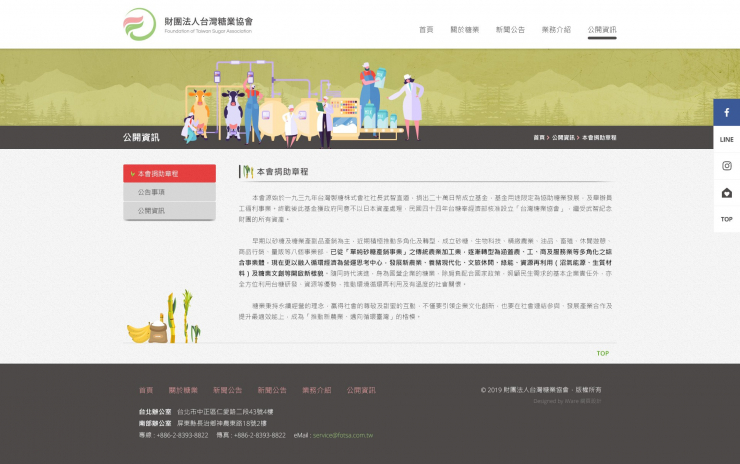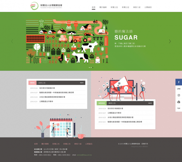 全部作品 精選作品 企業形象 購物網站 投審稿系統 客製平台 醫療美容 餐飲旅宿 教育/協會/政府 活動網站 RWD響應式 賀卡 3D環景攝影 首頁 iWare作品 台灣糖業協會 台灣糖業協會 介紹 本會源始於一九三九年台灣製糖株式會社社長武智直道,捐出二十萬日幣成立基金,基金用途限定為協助糖業發展,及舉辦員工福利事業。 規劃/Lori 設計/Katie 前端/Tirsta 程式/Carol 功能項目 LOGO設計 幻燈片管理 單層頁面管理 二層頁面管理 聯絡我們表單管理 產業分類 精選作品 RWD響應式 教育/協會/政府 陞采企業有限公司 企業形象 RWD響應式 匯能科技股份有限公司 精選作品 RWD響應式