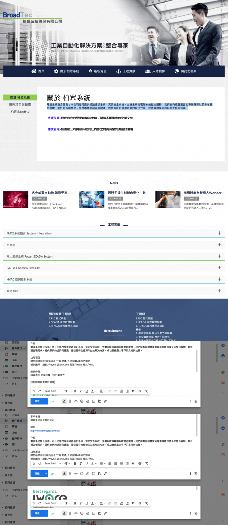 全部作品 精選作品 企業形象 購物網站 投審稿系統 客製平台 醫療美容 餐飲旅宿 教育/協會/政府 活動網站 RWD響應式 賀卡 3D環景攝影 首頁 iWare作品 柏眾系統股份有限公司 柏眾系統股份有限公司 介紹 電腦系統整合服務:本公司專門提供網路通訊系統、資訊安全系統、主機系統等電腦系統整合服務,我們擁有經驗豐富的專業團隊以及多年整合經驗,能針對各種需求,提供專業的諮詢與建議,提供最符合經濟效益的解決方案,成功贏得廣大客戶的支持與信賴。 製作團隊:規劃/Wayne, 設計/Katie 前端/Trista 程式/Miku 功能項目 關於柏眾系統 最新消息 工程實績 人才招募 與我們聯絡 產業分類 企業形象 RWD響應式 雲川科技有限公司 企業形象 RWD響應式 捷元生技有限公司 企業形象 RWD響應式