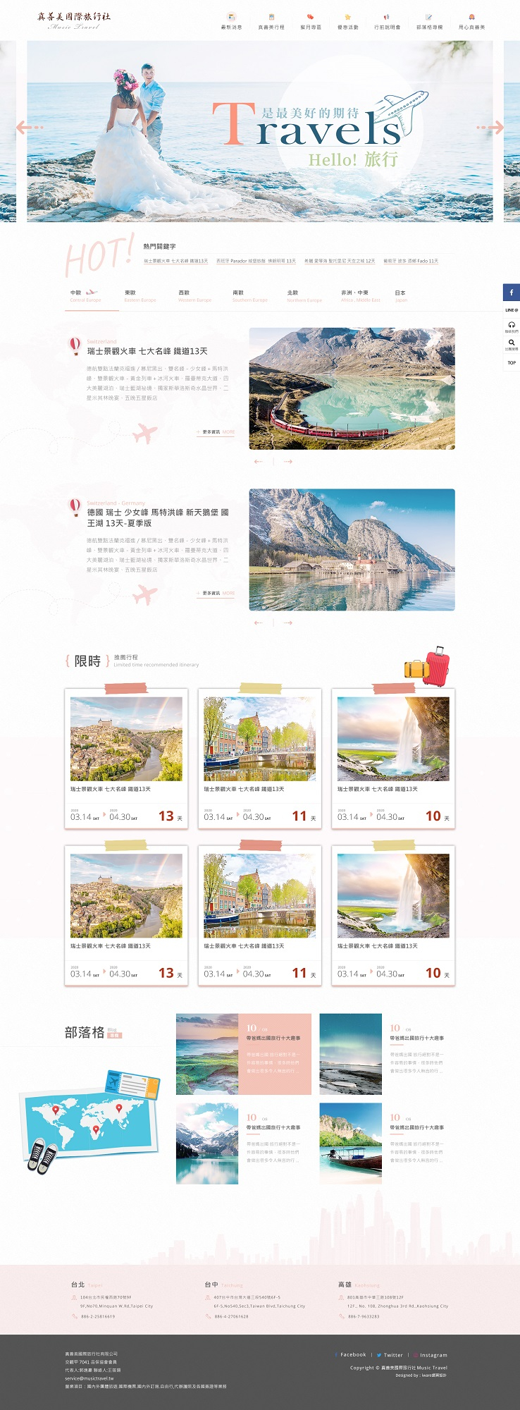 全部作品 精選作品 企業形象 購物網站 投審稿系統 客製平台 醫療美容 餐飲旅宿 教育/協會/政府 活動網站 RWD響應式 賀卡 3D環景攝影 首頁 iWare作品 真善美國際旅行社 真善美國際旅行社 介紹 規劃/Lori, 設計/Karen, 前端 Karen, 行程美編 Karen, PengPeng, Ringo, Katie 程式/Billy 功能項目 幻燈片輪撥管理 行程管理 線上報名管理 單層頁面管理 二層頁面管理 表單管理 產業分類 企業形象 2023 台北國際模具展暨智慧成型設備展(蔡司╳馬路 ) 3D環景攝影 中央研究院環境變遷中心 RWD響應式 教育/協會/政府