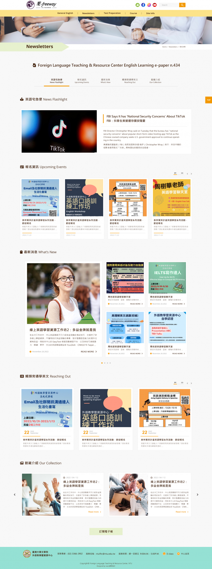 全部作品 精選作品 企業形象 購物網站 投審稿系統 客製平台 醫療美容 餐飲旅宿 教育/協會/政府 活動網站 RWD響應式 賀卡 3D環景攝影 首頁 iWare作品 台灣大學 E-freeway 線上外語自學教室網站 台灣大學 E-freeway 線上外語自學教室網站 介紹 規劃/Lori, 視覺&前端/Peng & Winnie, 程式/Carol 功能項目 General English Newsletters Test Preparation Course Site Info What’s New 產業分類 RWD響應式 教育/協會/政府 葡眾企業股份有限公司 精選作品 醫療美容 RWD響應式 中華民國防癆協會 精選作品 RWD響應式 教育/協會/政府