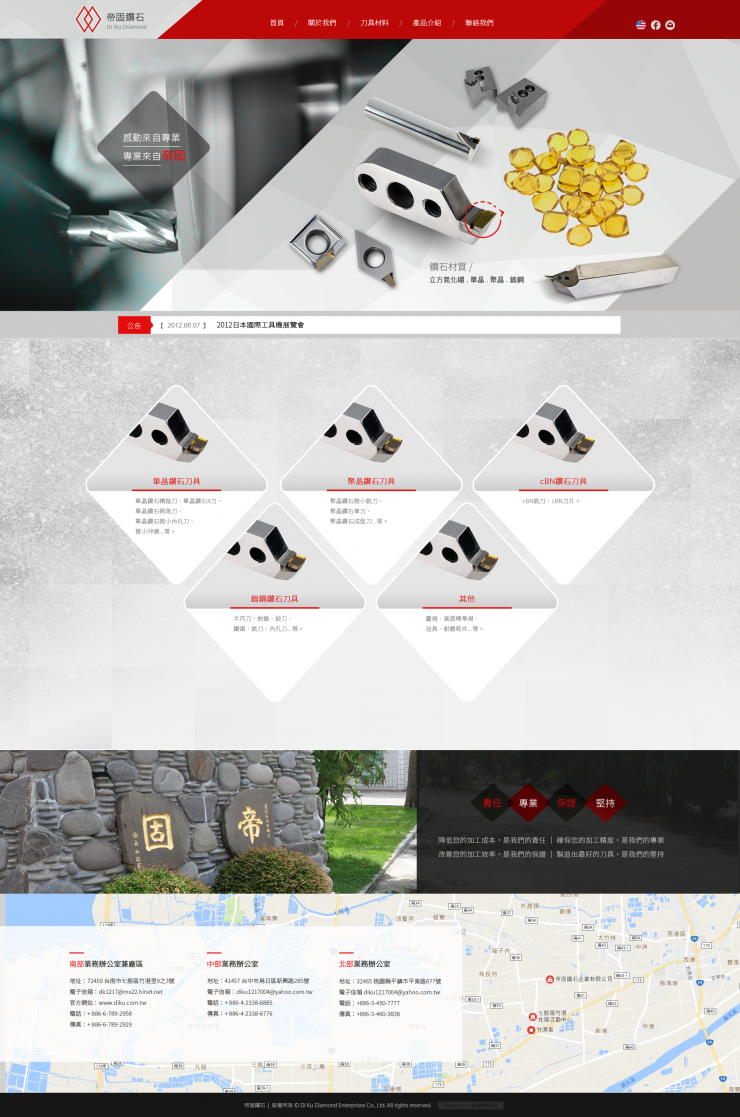 全部作品 精選作品 企業形象 購物網站 投審稿系統 客製平台 醫療美容 餐飲旅宿 教育/協會/政府 活動網站 RWD響應式 賀卡 3D環景攝影 首頁 iWare作品 帝固鑽石 帝固鑽石 介紹 帝固鑽石創立於1985年,主要從事多種鑽石刀具和鎢鋼特殊刀具的設計、製造與維修。三十幾年來,我們特別重視信譽和優良品質的保持,堅持提供給您最好的品質與服務,我們相信30年以上的專業經驗能夠給您更精密的刀具品質。 產業分類 企業形象 RWD響應式 斯朵利專業髮型美容 企業形象 RWD響應式 利宇工業 精選作品 RWD響應式